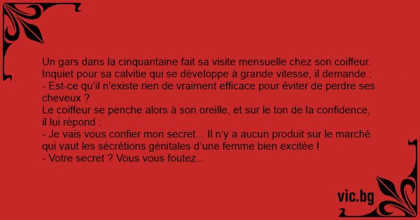Le coiffeur se penche alors à son oreille, et sur le ton de la confidence, il lui répond :