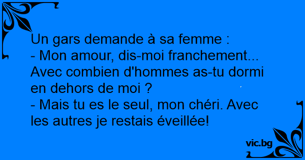 - Mon amour, dis-moi franchement... Avec combien d'hommes as-tu dormi en dehors de moi ?