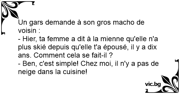 - Hier, ta femme a dit à la mienne qu'elle n'a plus skié depuis qu'elle t'a épousé, il y a dix ans. Comment cela se fait-il ?