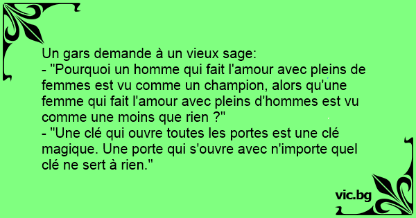 - "Pourquoi un homme qui fait l'amour avec pleins de femmes est vu comme un champion, alors qu'une femme qui fait l'amour avec pleins d'hommes est vu comme une moins que rien ?"