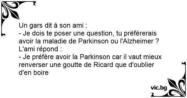 - Je préfère avoir la Parkinson car il vaut mieux renverser une goutte de Ricard que d'oublier d'en boire