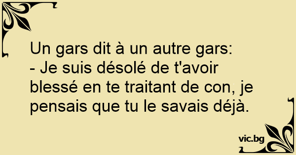 - Je suis désolé de t'avoir blessé en te traitant de соn, je pensais que tu le savais déjà.
