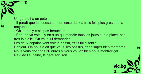 - Il paraît que les bossus ont un sexe deux à trois fois plus gros que la moyenne!