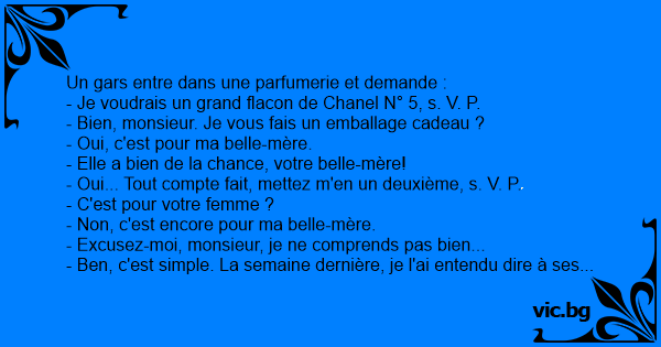 - Je voudrais un grand flacon de Chanel N° 5, s. V. P.