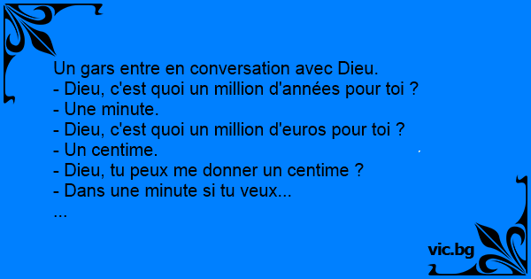 - Dieu, c'est quoi un million d'euros pour toi ?