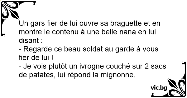 - Je vois plutôt un ivrogne couché sur 2 sacs de patates, lui répond la mignonne.