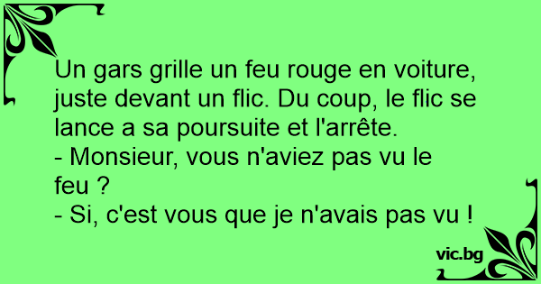 Un gars grille un feu rouge en voiture, juste devant un flic. Du coup, le flic se lance a sa poursuite et l'arrête.