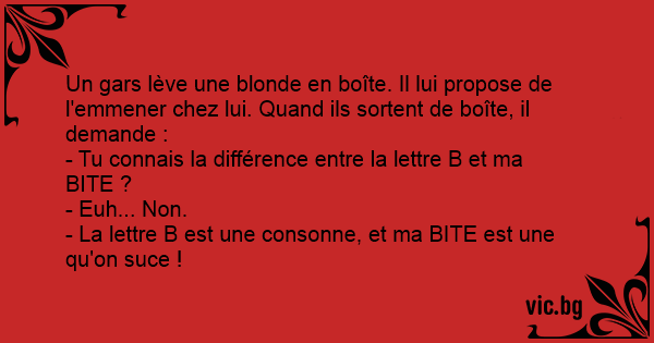 - La lettre B est une consonne, et ma BITE est une qu'on suce !