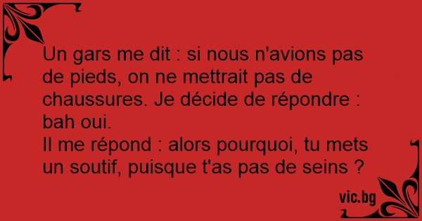 Un gars me dit : si nous n'avions pas de pieds, on ne mettrait pas de chaussures. Je décide de répondre : bah oui.