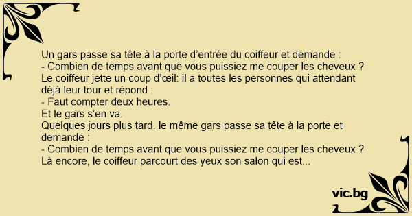 Le coiffeur jette un coup d’œil: il a toutes les personnes qui attendant déjà leur tour et répond :
