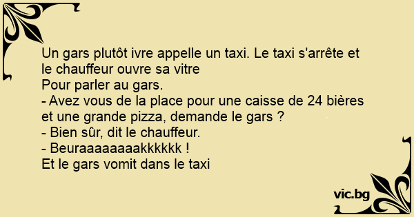 Un gars plutôt ivre appelle un taxi. Le taxi s'arrête et le chauffeur ouvre sa vitre