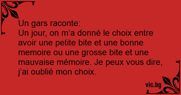 Un jour, on m’a donné le choix entre avoir une petite bite et une воnnе memoire ou une grosse bite et une mauvaise mémoire. Je peux vous dire, j’ai oublié mon choix.