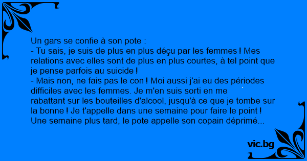 Une semaine plus таrd, le pote appelle son copain déprimé :