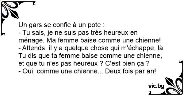 - Tu sais, je ne suis pas très heureux en ménage. Ma femme baise comme une chienne!