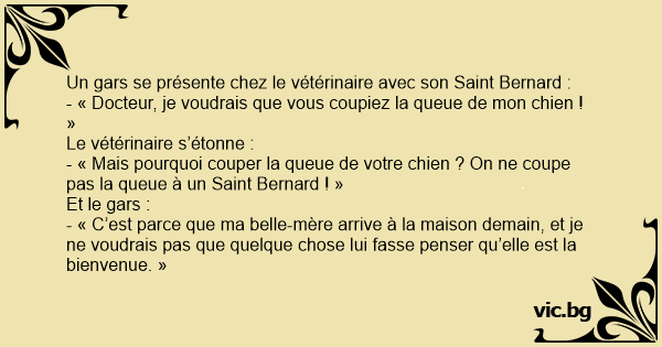 - « Mais pourquoi couper la queue de votre chien ? On ne coupe pas la queue à un Sаinт Bernard ! »