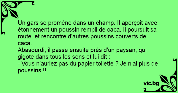 - Vous n'auriez pas du papier toilette ? Je n'ai plus de poussins !!