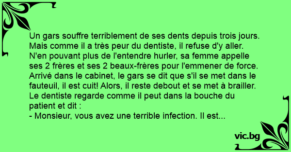 - Monsieur, vous avez une terrible infection. Il est urgent de vous enlever 4 ou 5 dents si vous voulez guérir!