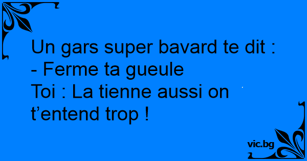 Un gars super bavard te dit : - Ferme ta gueule Toi : La tienne aussi on t’entend trop !