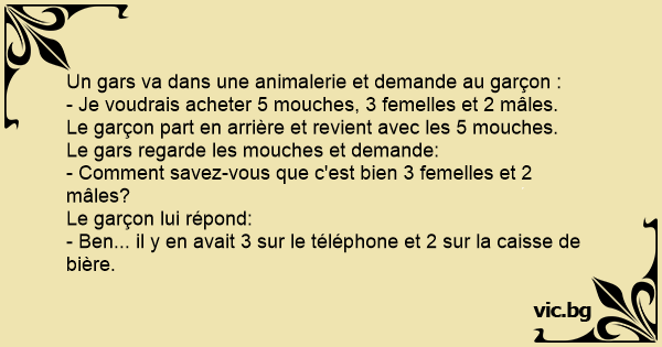 - Je voudrais acheter 5 mouches, 3 femelles et 2 mâles.
