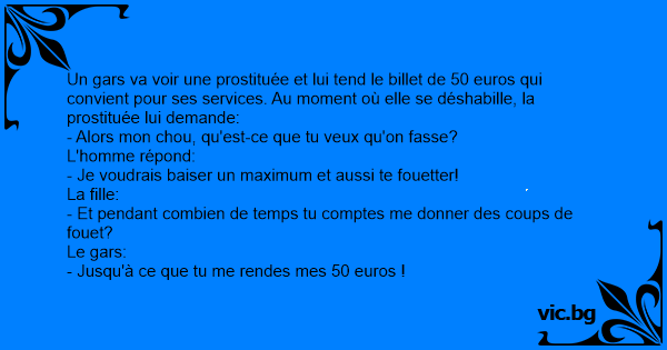 Un gars va voir une prostituée et lui tend le billet de 50 euros qui convient pour ses services. Au moment où elle se déshabille, la prostituée lui demande:
