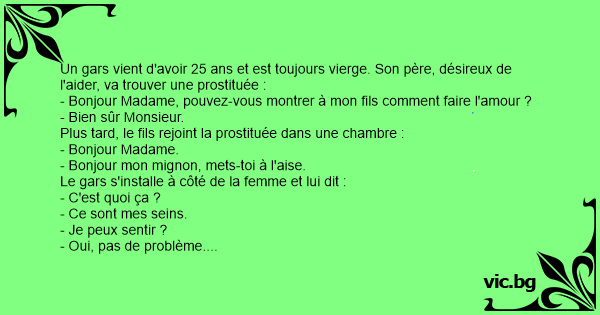 - Bonjour Madame, pouvez-vous montrer à mon fils comment faire l'amour ?