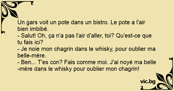 - Je noie mon chagrin dans le whisky, pour oublier ma belle-mère.