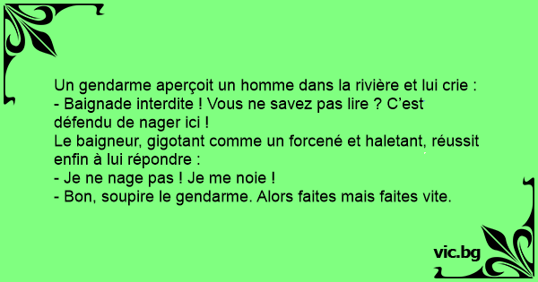 Un gendarme aperçoit un homme dans la rivière et lui crie :