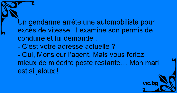 - Oui, Monsieur l’agent. Mais vous feriez mieux de m’écrire poste restante… Mon mari est si jaloux !