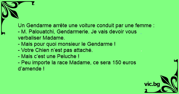 - Peu importe la race Madame, ce sera 150 euros d’amende !