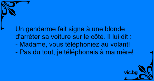 Un gendarme fait signe à une blonde d'arrêter sa voiture sur le côté. Il lui dit :