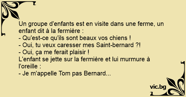Un groupe d'enfants est en visite dans une ferme, un enfant dit à la fermière :