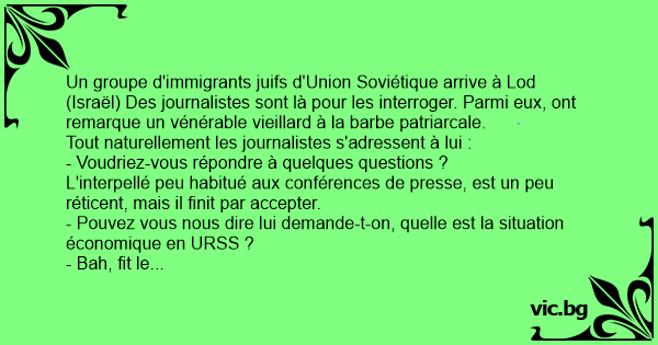 Un groupe d'immigrants juifs d'Union Soviétique arrive à Lod (Israël) Des journalistes sont là pour les interroger. Parmi eux, ont remarque un vénérable vieillard à la barbe patriarcale.