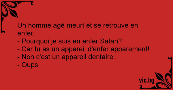 Un homme agé meurt et se retrouve en enfer.