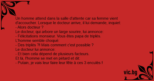 - Félicitations monsieur. Vous êtes papa de triplés.
