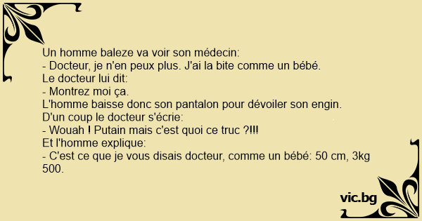 - Docteur, je n'en peux plus. J'ai la bite comme un bébé.