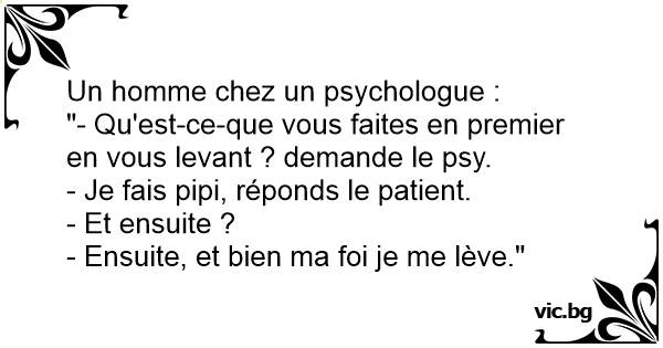 "- Qu'est-ce-que vous faites en premier en vous levant ? demande le psy.