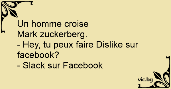 Un homme croise Mark zuckerberg.- Hey, tu peux faire Dislike sur facebook?- Slack sur Facebook 2 0 0 Blagues drôles