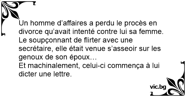 Un homme d’affaires a perdu le procès en divorce qu’avait intenté contre lui sa femme. Le soupçonnant de flirter avec une secrétaire, elle était venue s’asseoir sur les genoux de son époux…