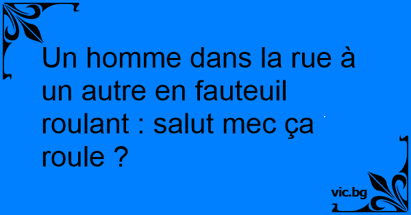 Un homme dans la rue à un autre en fauteuil roulant : salut mec ça roule ?
