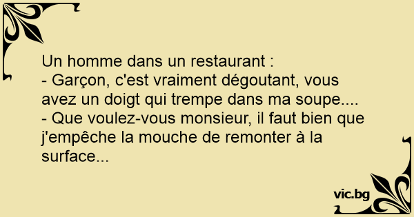 - Garçon, c'est vraiment dégoutant, vous avez un doigt qui trempe dans ma soupe....