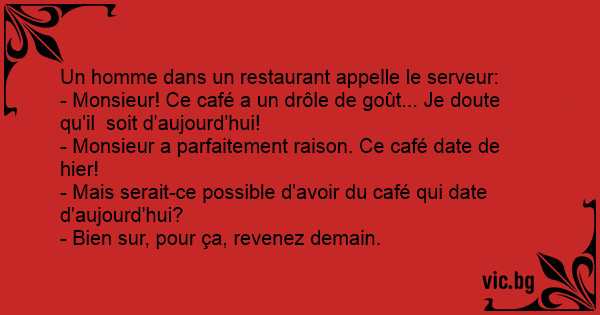 - Monsieur a parfaitement raison. Ce café date de hier!