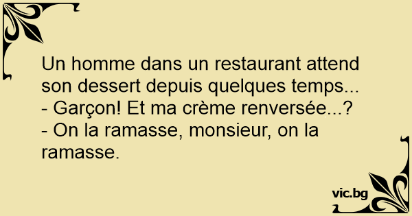 - Garçon! Et ma crème renversée...?