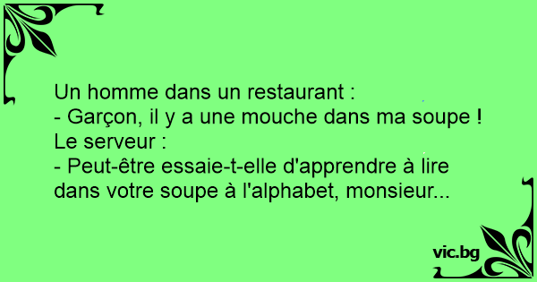 - Garçon, il y a une mouche dans ma soupe !