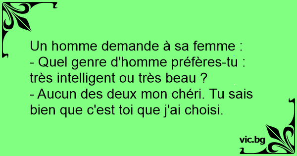 - Quel genre d'homme préfères-tu : très intelligent ou très beau ?