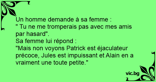 "Mais non voyons Patrick est éjaculateur précoce, Jules est impuissant et Alain en a vraiment une toute petite."