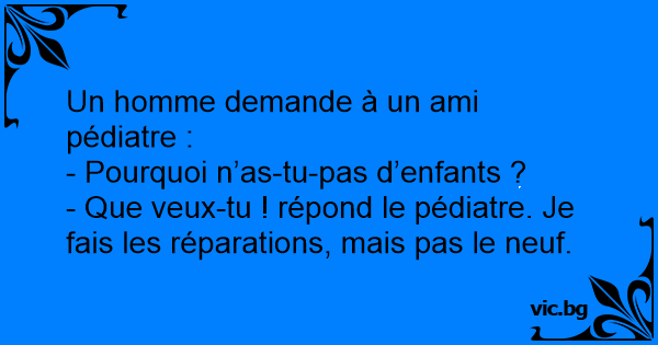 - Que veux-tu ! répond le pédiatre. Je fais les réparations, mais pas le neuf.