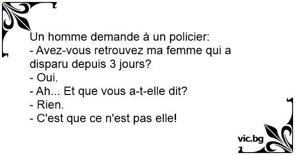 - Avez-vous retrouvez ma femme qui a disparu depuis 3 jours?
