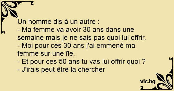 - Moi pour ces 30 ans j'ai emmené ma femme sur une île.