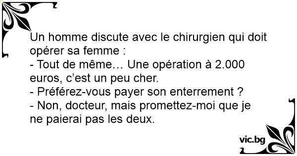 - Non, docteur, mais promettez-moi que je ne paierai pas les deux.