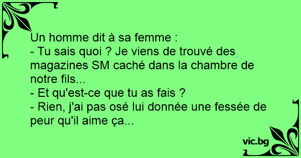 - Tu sais quoi ? Je viens de trouvé des magazines SM caché dans la chambre de notre fils...